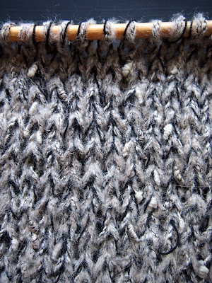 Kaksinkertainen lanka: villa + efektilanka (puuvilla).
