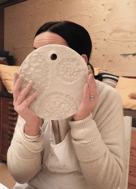 Mosaiikkimestari Minna Flomanin työhuoneella.